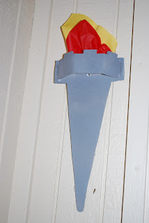 I made the torches from foam board, gray spray paint,